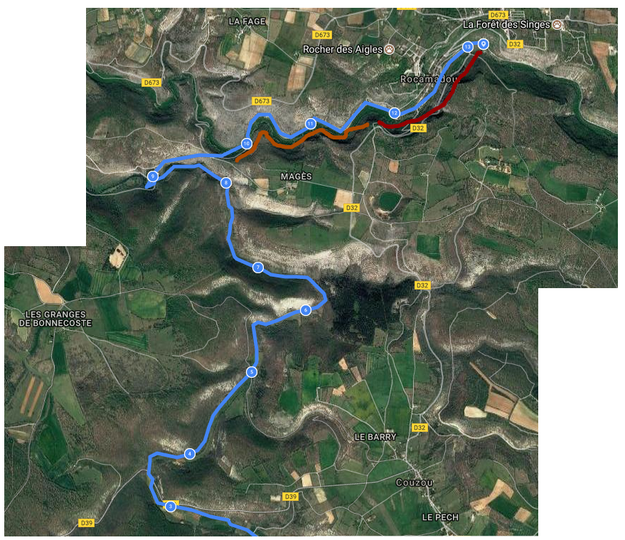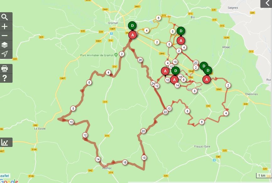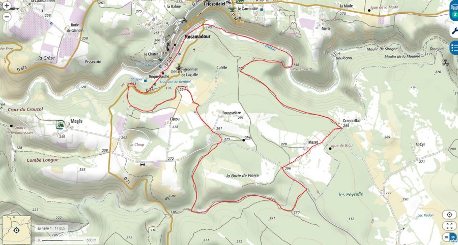 Bon on ira à Rocamadour à pied en touriste un jour ou on aura pas fait un trop grosse sortie. Mais je garde l'idée de la piste cavalière qui est au Sud