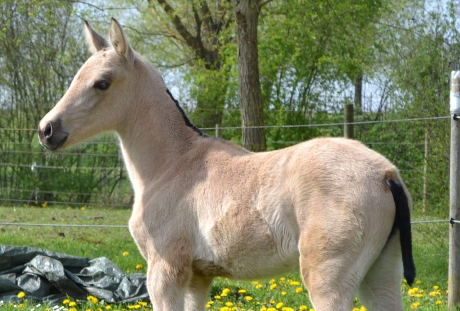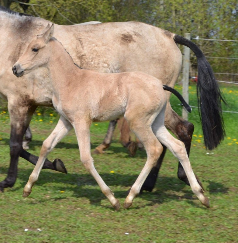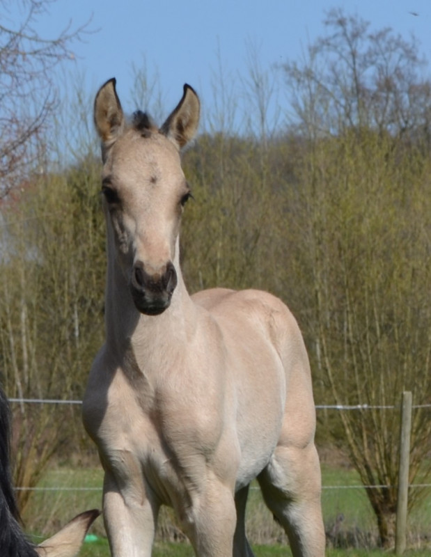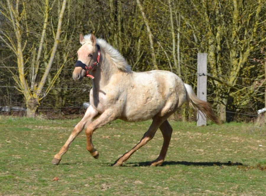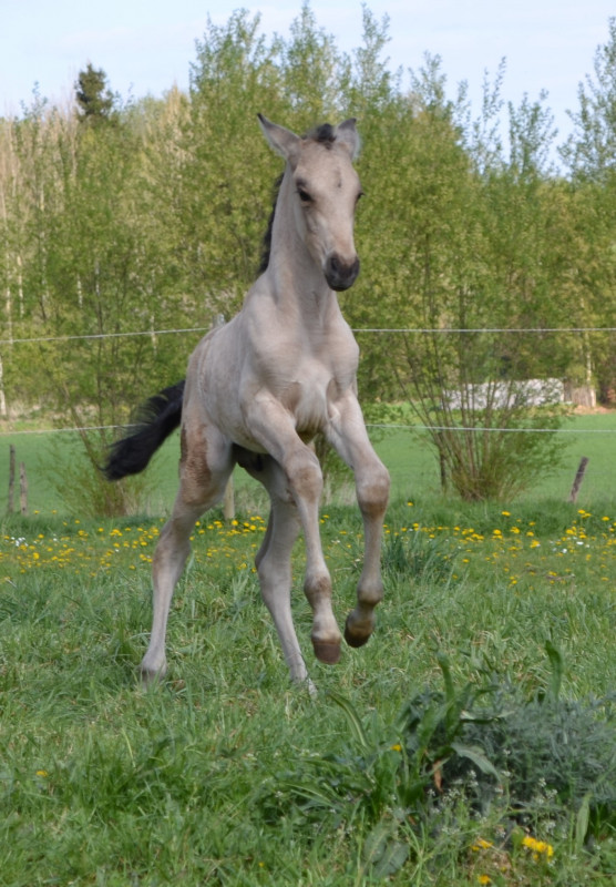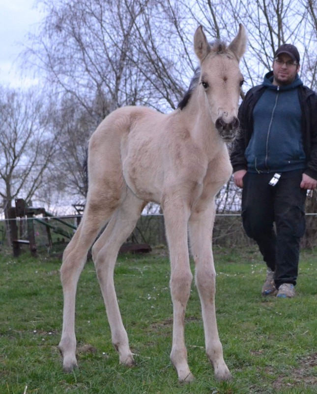 Idilio notre poulain PRE PP entier palomino vient de prendre 2 ans et vit avec notre étalon reproducteur Curro, ils s'entendent à merveille!