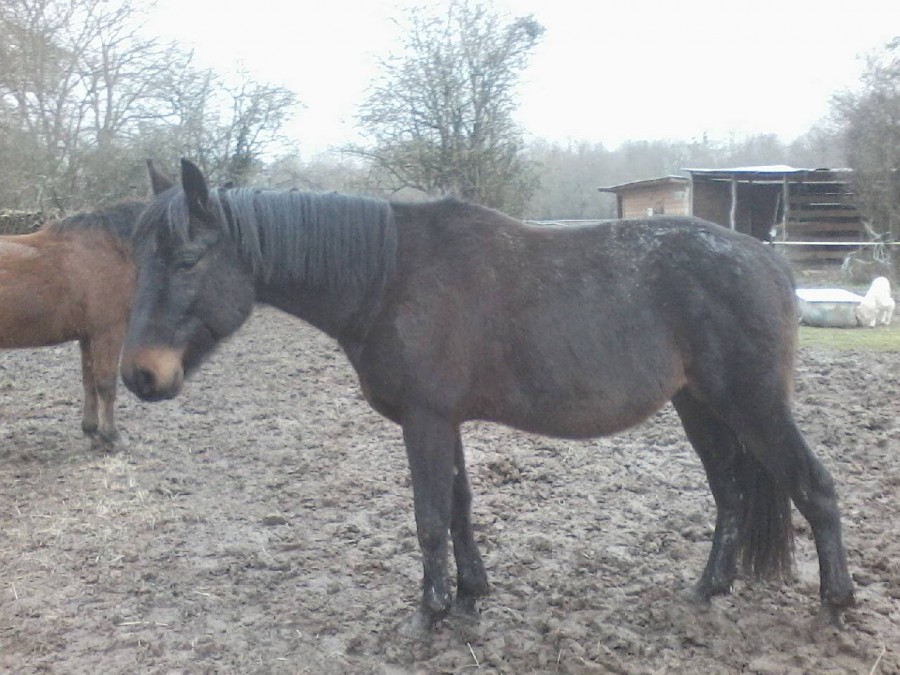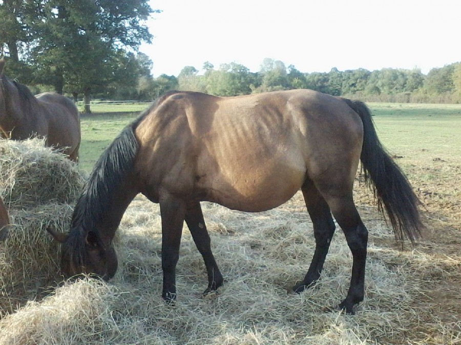 janvier 2017. arrivé pas épais et TRES ventru! mis au foin a volonté + ration