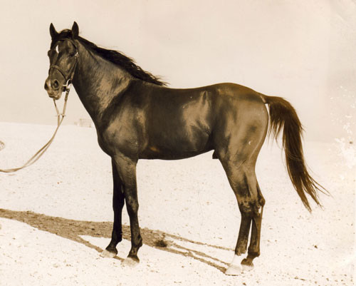 En photo, Ourour (1947) né en Tunise, Koheilan Adjouz (lignée perdue perdurant uniquement via les lignées mâles)