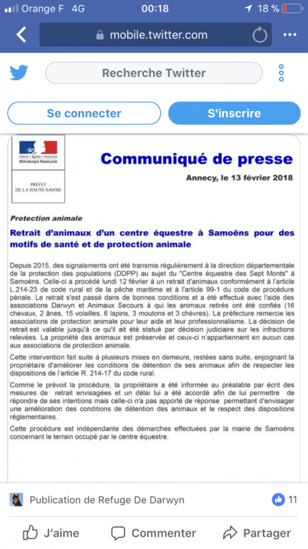 On est tout un groupe a être intervenu dans l'affaire Coralie Marcotte ( sinoan arabiens) affaire gravissime, plusieurs chevaux et chiens morts dans des conditions atroces, aucune structure en conformité notamment au sujet de son élevage chiens, bouvier bernois et Laika... escroqueries multiples, malversations et une jeune fille qui se suicide ( apprenti chez elle) suite a son alerte de maltraitance. Malgré toute l’énergie qu'on a mis dans cette affaire sordide et toutes les preuves de tout ce que je viens de résumer, 2 ans! pour avoir une saisi, même pas la moitie de ses animaux, pour beaucoup c’était trp tard et pour d'autres ils sont planques, sans que les autorités compétentes se soient donner la moindre peine de les chercher! La duré de 2/3 ans au mieux est la moyenne dans les affaires les plus graves .... Les arguments que vous exposer sont complètement ahurissants! Je suis moi même propriétaire de plusieurs chevaux et je connais parfaitement la question, prétendre que l'eau est sale, qu'ils mangeaient par terre, que certaines cabanes étaient un peu bancales , que la personne en question , ,n'avait pas de tracteur , pas d'eau courent etc, etc. Ça suppose, que cette dame , malgré les conditions, est une extraterrestre pour avoir ses chevaux en si bon état! car dessolé! mais aucune photo et encore moins la vidéo ( que vous vous été empresser de faire enlever) ne démontrent des animaux maltraites ou en mauvais état. Un autre de vos arguments qui m’interpelle est le reproche des petits paddocks, ah oui! combien de centres équestres en France sont capables de fournir ces petits paddocks? Combien de chevaux en France ne sortent de leur cage que pour travailler? Quel est votre surface pour accueillir les chevaux que vous venez de saisir? Bref ça sent a plein nez un abus de pouvoir! les raisons a la limite , on s’en fous! Ce qui est grave dans cette affaire c'est que ça concerne des quantités de proprios qui pourraient se retrouver avec une saisie du même genre, car cela pourrai faire jurisprudence... De deux choses l'une soit c'est une saisie pour maltraitance et dans ce cas, cela me semble TRÈS abusif soit c'est une non conformité des infrastructures et dans ce dernier cas c'est une démarche administrative qui ne justifie en rien une saisie des animaux. Bref! c'est lamentable de voir das situations tels! alors qu'il y a des cas gravissimes qui attendent depuis des années! La façon d'on cette histoire a été mené est plus que suspecte, faire enlever la publication de la vidéo ( très rapidement) de la saisie pour soit disant diffamation, c'est du foutage de gaule! la vidéo montrait parfaitement le peu de connaissance du cheval de la part des sauveteurs et SURTOUT, le très bon état des chevaux. Tout cela prouve un manque de démocratie de plus en plus criante dans ce pays..