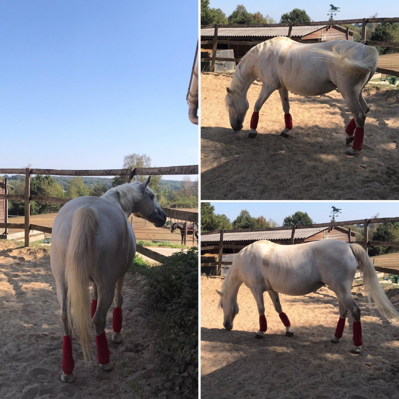 Choqué et fâché je vais la chercher. Elle est dos à moi. Je retourne la jument et là découvre que son membre est en train de se vider de sang comme un robinet. Prise d'état de panique j'appelle la fille des proprios qui malheureusement est à 1h de route. Elle me calme et me dit d'essayer de ramener la jument aux niveau des salles de soin. On y va tranquillement, Roxie ne semble pas sensible à ce qu'il lui arrive, elle aura juste un tremblement.