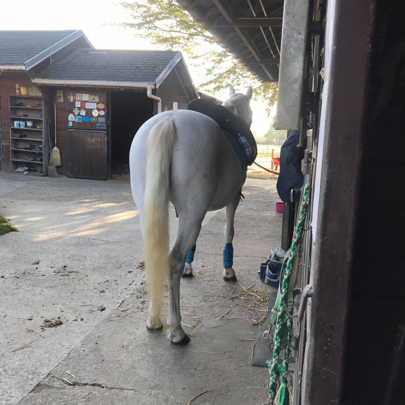 Nous avons eu un peu de mal a remettre en route, j'avais peur d'y aller trop vite. Nous avons repris tranquillement sur le plat et beaucoup d'extérieur. Plus de saut.