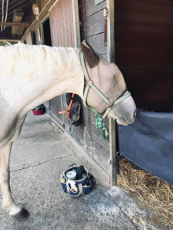 Ce qu'elle n'avait pas prévu c'est que comme il fait beau, j'ai pris la résolution de nettoyer un minimum mon cheval même si il n'y a pas concours!
