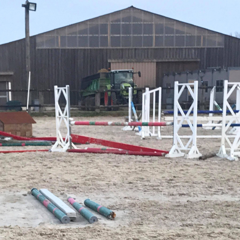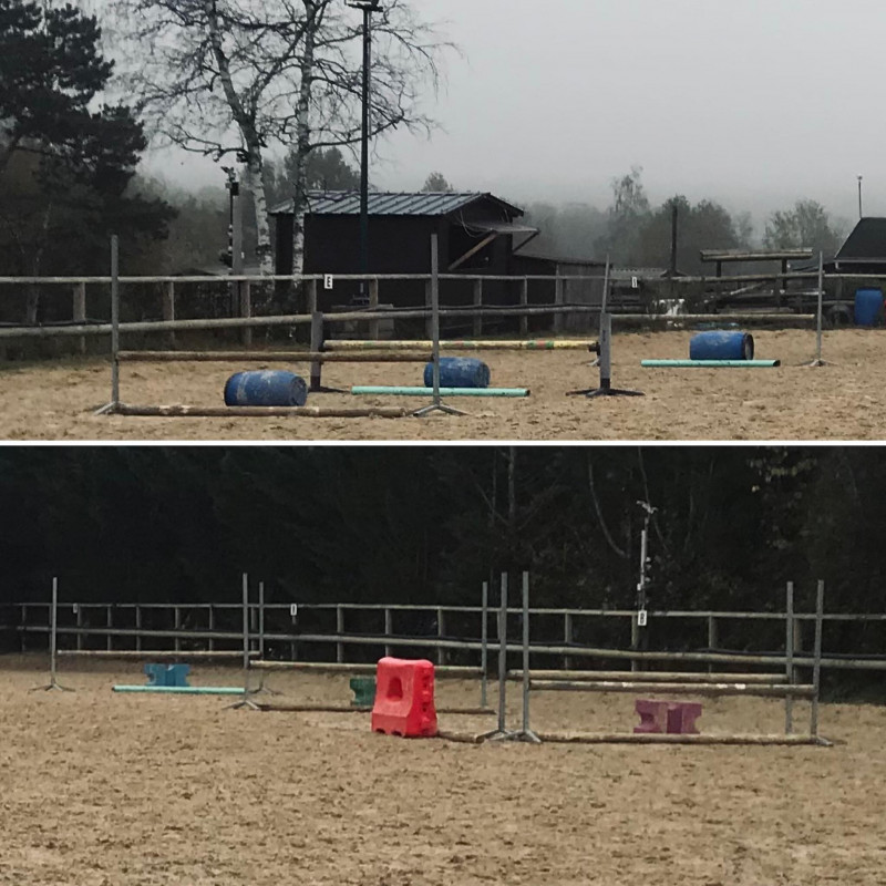 Niveau obstacle : Grosse régression. J'ai un cheval très énervé, qui se met en pression et les séances se passent en dents de scie. Elle peut sauter des dispositif comme il faut et charger la barre ou s'arrêter sur un oxer en plein milieu.