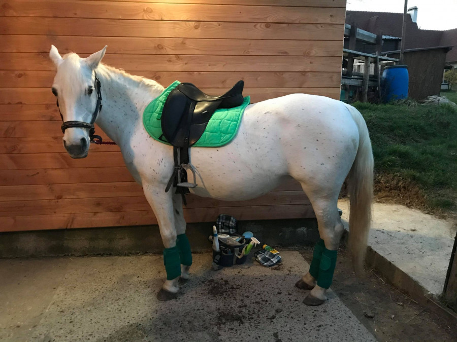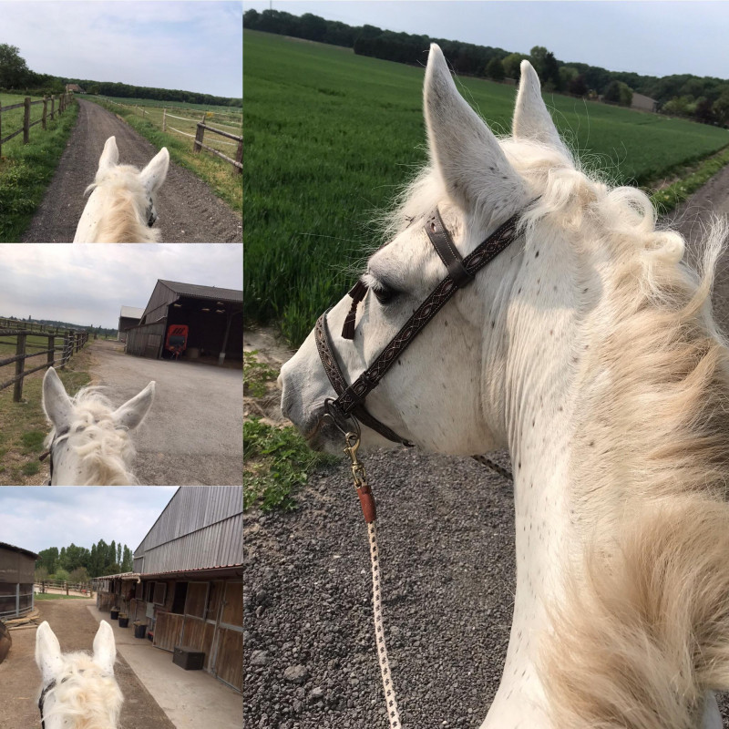 Pour changer les idées de mon très chère cheval, on a fait une "balade" maison. Par principe je ne sort pas en balade, donc on a fait tous le tour de l'écurie au pas; 2 tours de trot, 2 tours de galop en carrière rênes longues. Evidemment ça lui a fait plaisir, ça m'as fait plaisir de ne pas me prendre le chou avec.