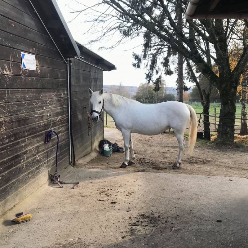Arrivé à la salle de soin, le fils et la propriétaire des écuries me viennent en aide. On prévient la clinique, on cherche un transport.