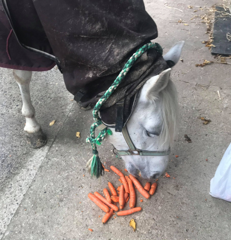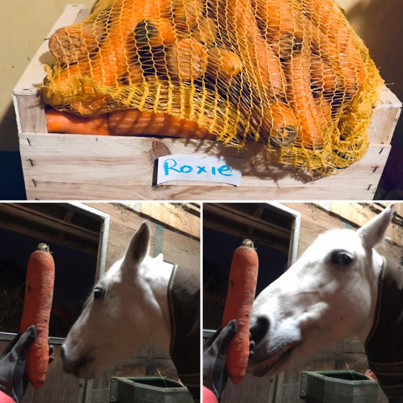 Nous avons mis en place des commandes de carottes groupés aux écuries pour le grand bonheur de Roxie.