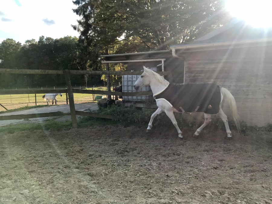 Le confinement aura été positif pour Roxie, c'est le retour au paddock en herbe avec son Othelo! Je l'ai rapidement découverte. C'était trop pénible la rotation de couverture et les température sont radoucis. Je l'ai recouvert en polaire juste 2 nuits venteuse.