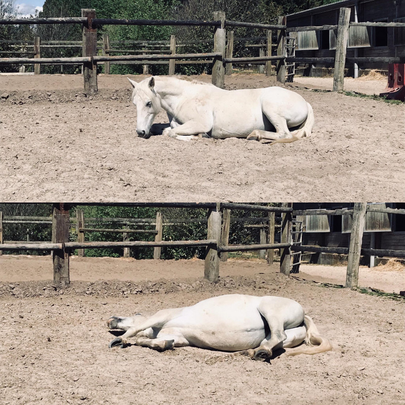 Visiblement ça lui a demander trop d'effort puisqu'elle m'as fait la surprise au paddock de se faire une sieste. Au début j'ai eu un peu d’inquiétude parce que c'est vraiment pas son genre. Mais non! Il y avait du soleil, les oiseaux qui chante, juste moi alors on dort comme un gros sac!