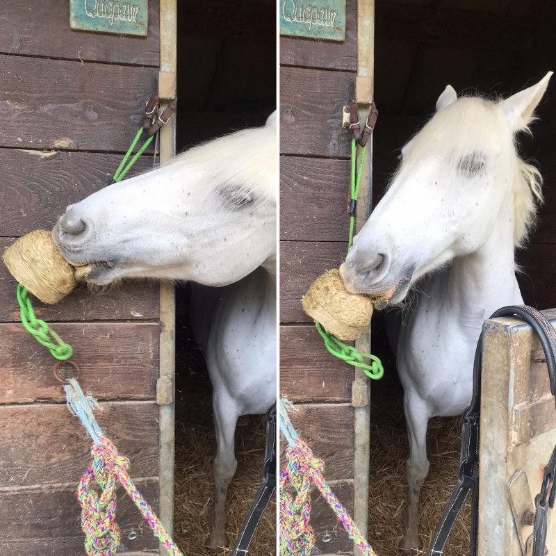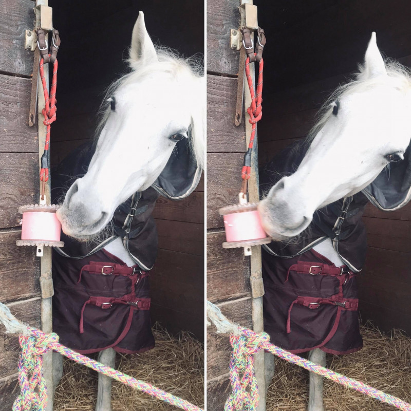 Une fois tous remis à neuf, pas de bêtise en vue jusqu'au jour où j'ai retrouver la mangeoire éjecter dans le box mais surtout la pierre introuvable.