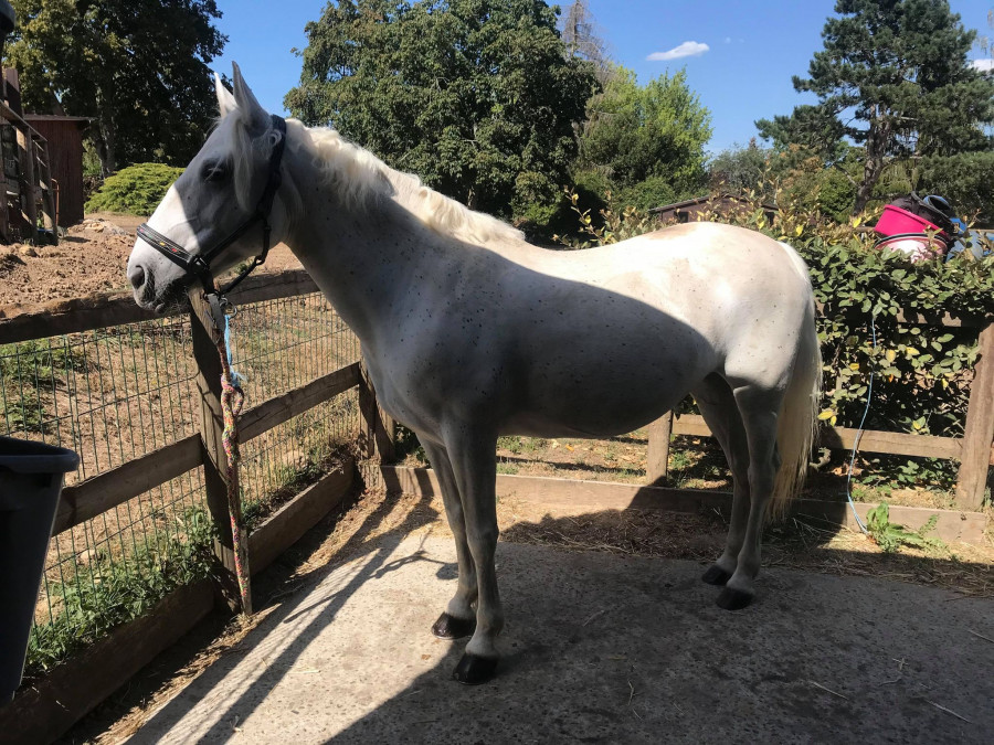 Là bas, elle a changé de mode de vie. Pré 24h/24 avec une copine. Enfin une vrai vie de cheval!
