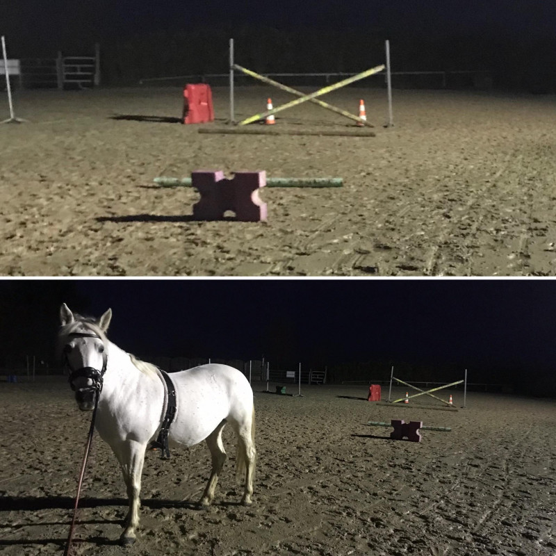 En février j'ai retrouvé un travail à temps plein, donc finis les séances de jour. On a tester l'éclairage de la carrière, elle était pas très à l'aise mais bon trop rien dit.
