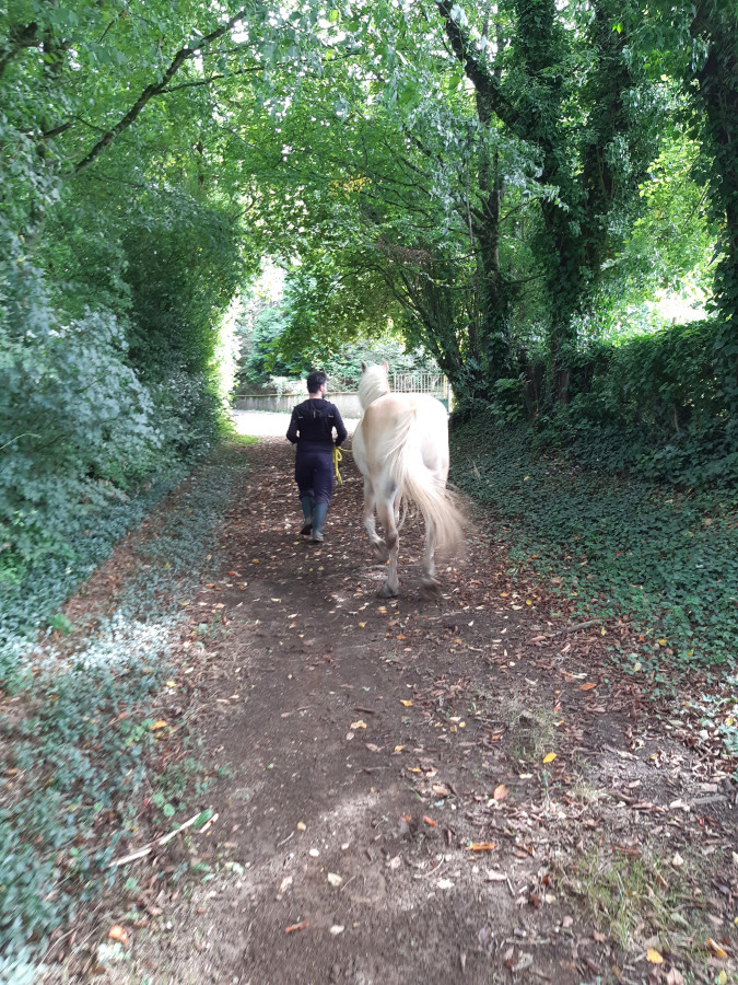 En plus il était sûrement uppé par la présence de la petite, et je le sens de plus en plus frustré en TAP : il veut du plus varié, du nouveau, bref de la stimulation... je n'ai rien pu faire de tout ça xD j'ai essayé de remettre du calme et de l'arrêt, jusqu'à ce qu'il fasse deux pas des postérieurs sans bouger les antérieurs. J'ai direct arrêté, félicité et puis retour au pré ^^