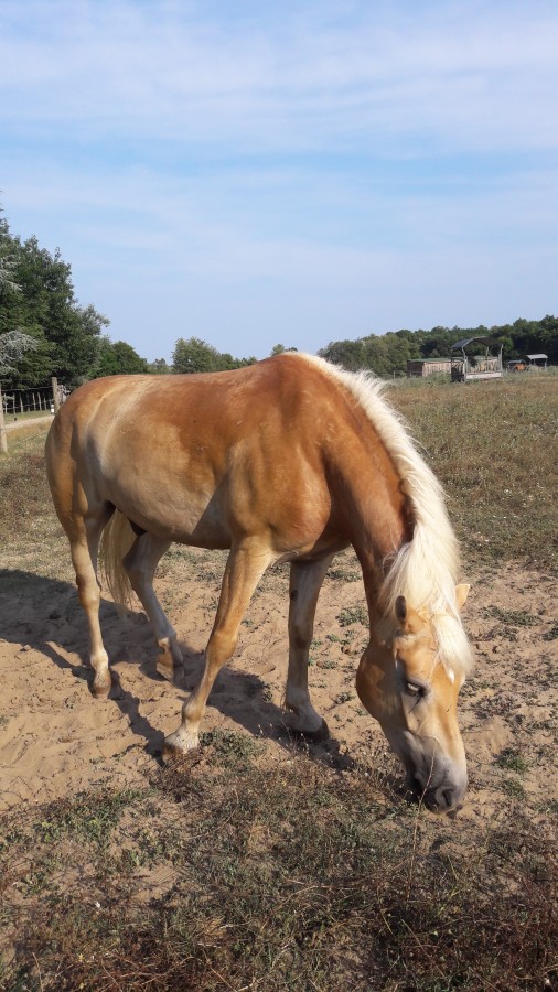 beaucoup plus dans l'impulsion, et presque naturellement, alors qu'il faisait une chaleur à crever. Je l'ai très peu relancé durant la séance. En revanche il partait toujours avec le balancier de l'encolure, donc même en ayant de l'impulsion, il n'y avait pas une poussée des postérieurs de fou...