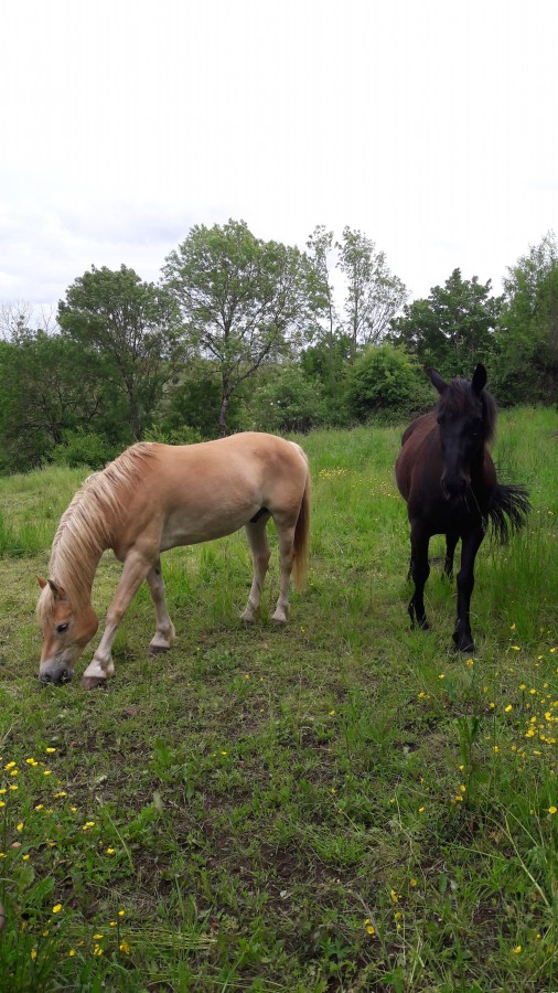 inséparables avec son nouveau copain. Les présentations ont été faites avec un autre hongre, l'un des deux potentiellement plus "durs" avec les nouveaux. Ca s'est très bien passé aussi, Sunny a fait profil bas donc aucun souci.