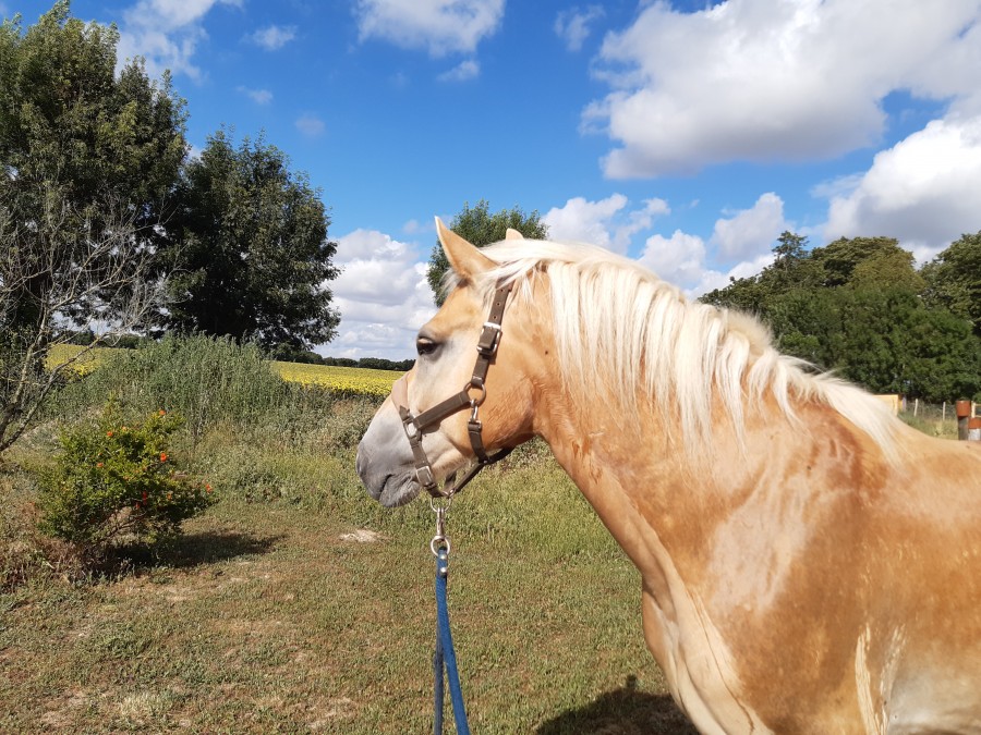 J'ai l'impression qu'on retrouve une relation qu'on avait un peu perdu dans la pension sauvage précédente... et qu'elle devient même plus forte. On sent sur certains exo qu'il commence à me faire confiance (recul en slalom entre les plots sans se poser de question) et du coup comme il est plus respectueux je commence à lui faire confiance aussi...