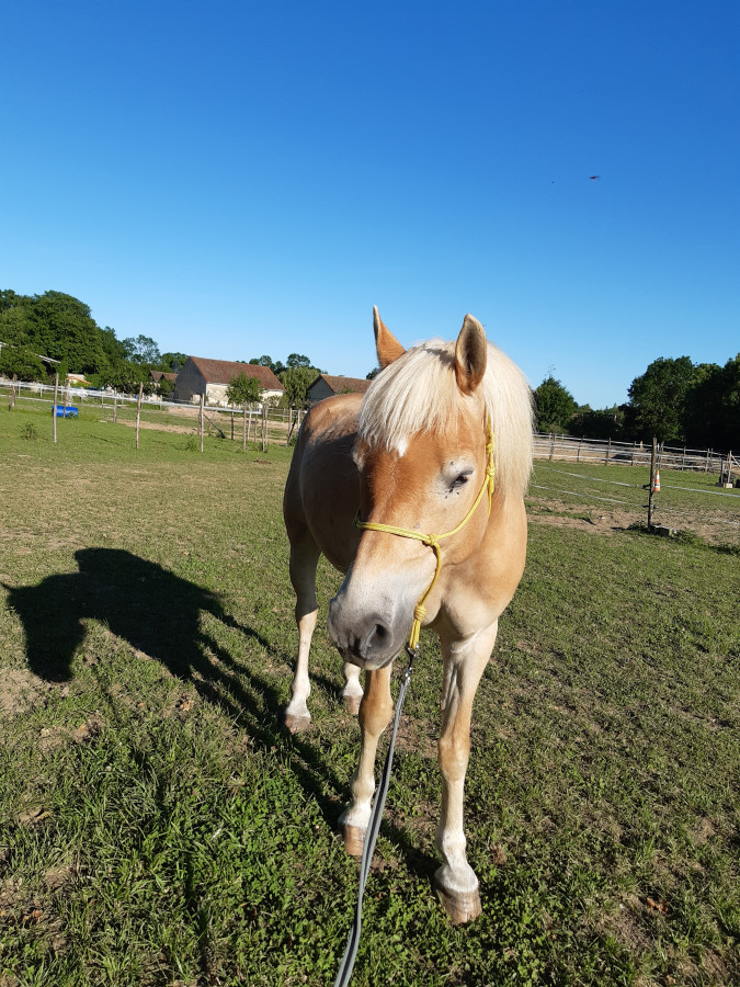 Et j'ai un cheval super curieux, pétillant, éduqué, respectueux, et qui sait faire preuve de patience... ;) Même si parfois je vais reprendre ce fameux exercice. Bien sûr, de part son anxiété, si je sens qu'il ne peut pas se gérer, je n'insiste pas et j'attends un moment plus propice pour l'amener à cet exercice.
