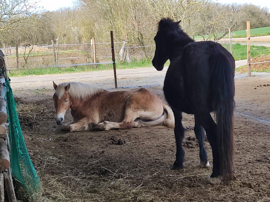 Sunny était fou de joie, on était dans la carrière à côté du PP donc il a fait le fifou avec les copains à côté qu'il n'a pas vu depuis longtemps (il est toujours puni en stabu comme les clôtures sur secteur ne sont pas terminées...)