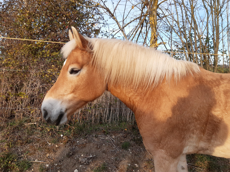 J'avais comme projet balade à cheval en solo en licol, ça fait un petit moment déjà. Sauf que en arrivant, vent à décorner les boeufs... j'attrape Sunny qui broutait au fond du pré, y'a un claquement au loin, tous les chevaux regardent dans cette direction, et Sunny qui était loin des autres commence à me faire un demi tour galop pour rejoindre le reste du troupeau... bon comme il est super mignon et respectueux, il reste avec moi, mais je le sens tendu comme un string et là clairement, au milieu du troupeau sur leur "territoire", ça ne sera jamais moi la référence de sécurité lol