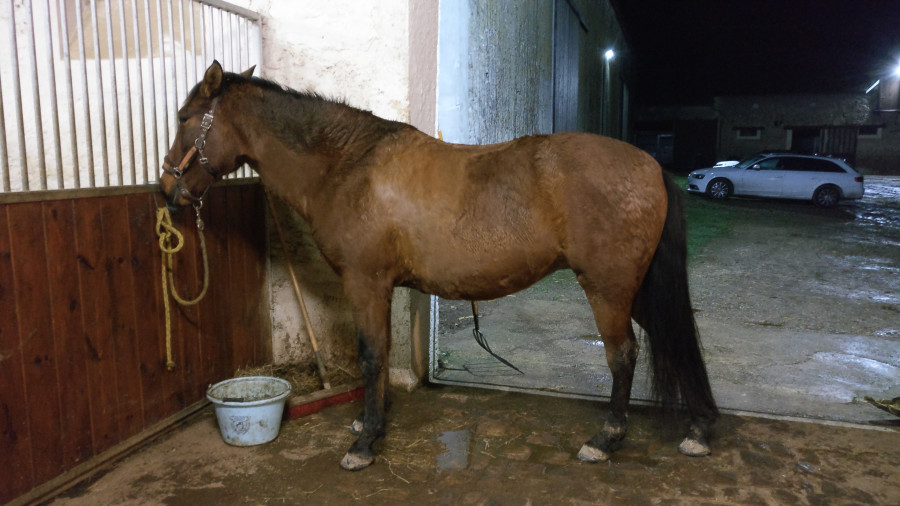 Pour une fois elle est presque propre, pansage rapide, je selle et j'emmène le filet pour le mettre après.