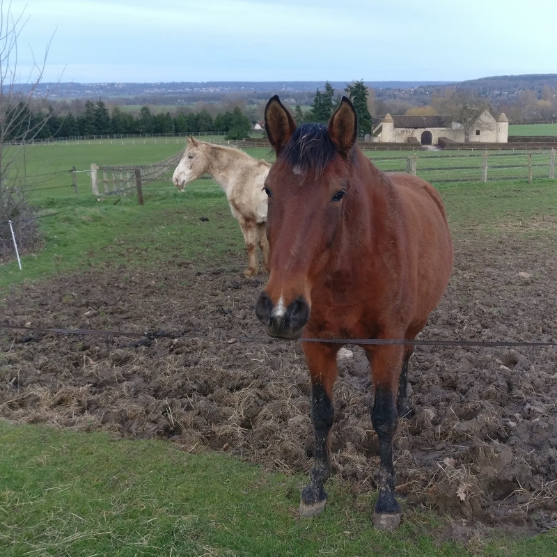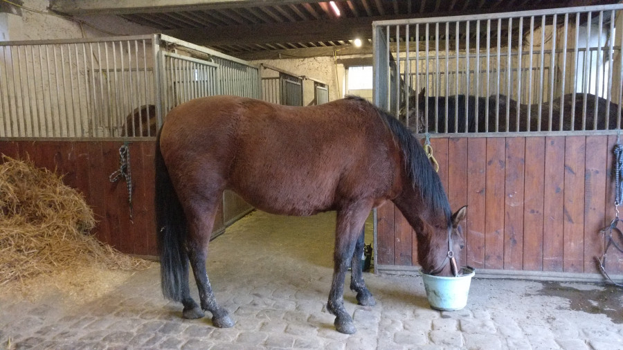 Je suis arrivée aux écuries en sentant que je ne devrais pas monter ce soir mais bon, il faisait encore jour, pas trop froid, on entendait encore les oiseaux, Calina m'attendait à l'entrée du pré et elle était PROPRE !