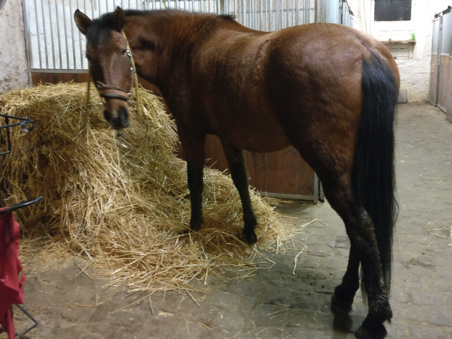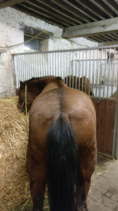 Retour aux écuries pour lui donner sa ration et faire un bon pansage !