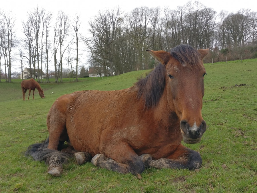 Quand je suis arrivée au pré mademoiselle était en pleine sieste et elle a accepté que je m'approche d'elle pour