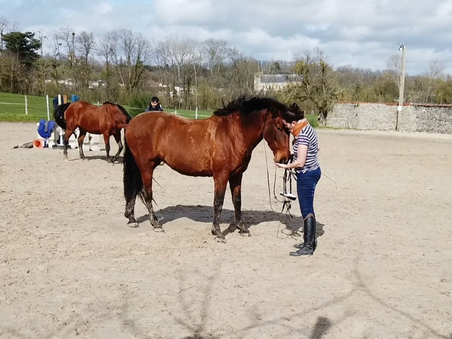 5 minutes d'instants présents habituels une fois en selle et en restant à l'arrêt puis demande du pas avec le bassin et on enchaîne les