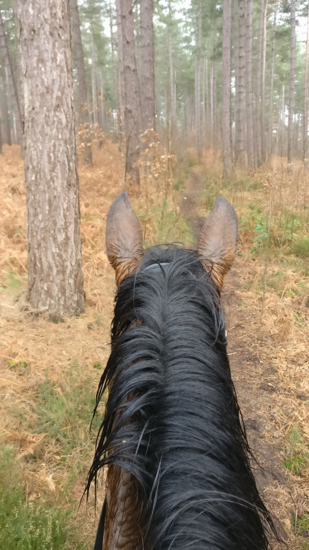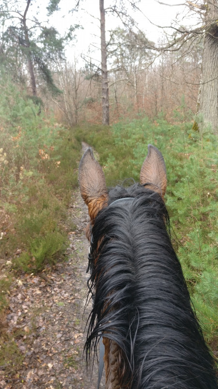 6 km sur des terrains détrempés et une Calina exemplaire : rênes longues tout le long (sauf à un moment où je lui ai proposé de trotter sur un chemin à peu près correct et qu'elle a pris le galop en mode cheval de guerre