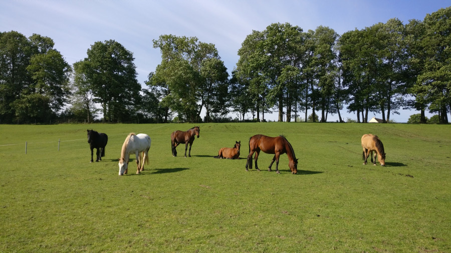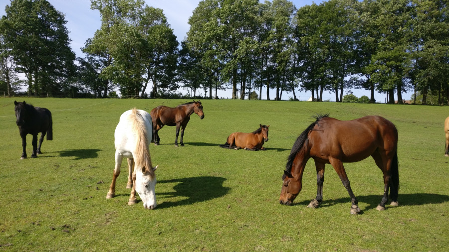 Arrivée aux écuries, je prends le temps de migrer mes affaires de ma voiture à mon armoire, je prépare la ration de Calina (elle n'en a pas eu depuis 2 mois ahah) et hop, direction le pré !