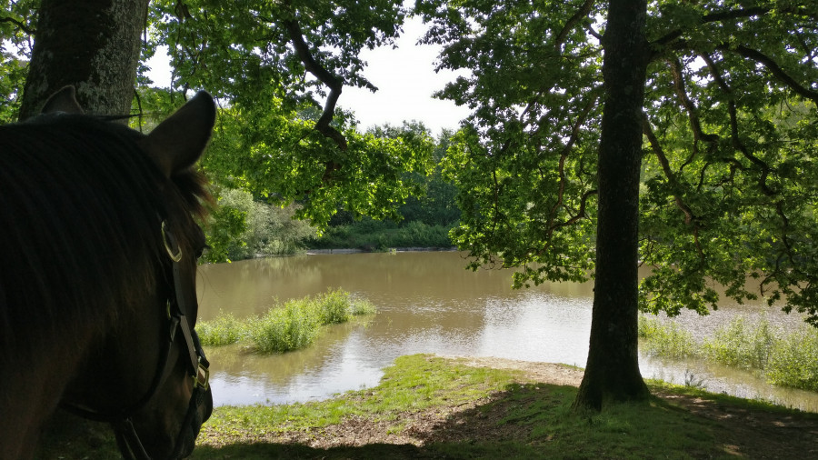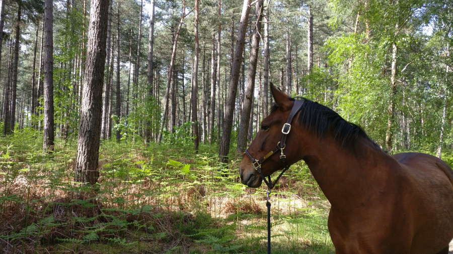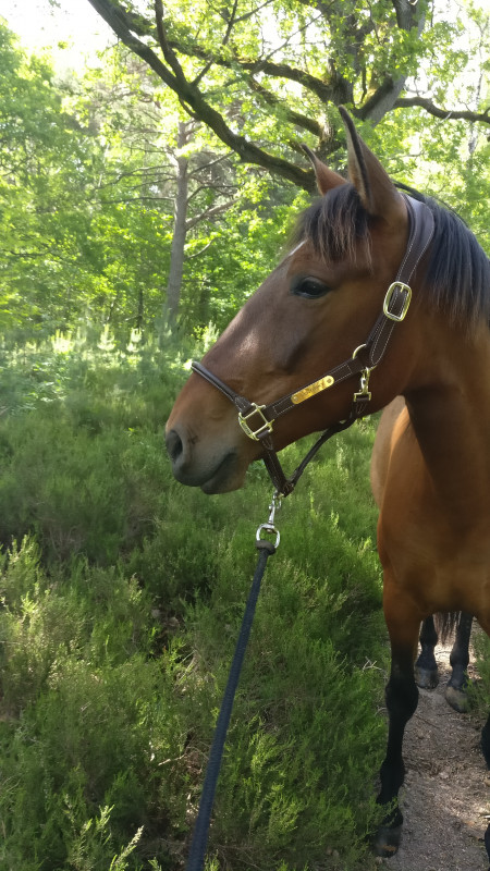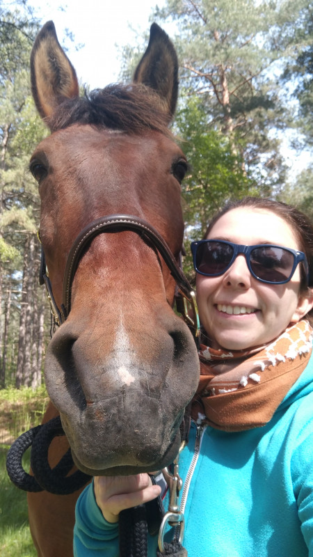Je lui donne sa ration à l'attache, elle est toujours très zen même s'il n'y a aucun autre cheval, elle me bluffe ! Puis petit pansage et c'est parti pour une balade en main (depuis le temps que j'en rêve) !