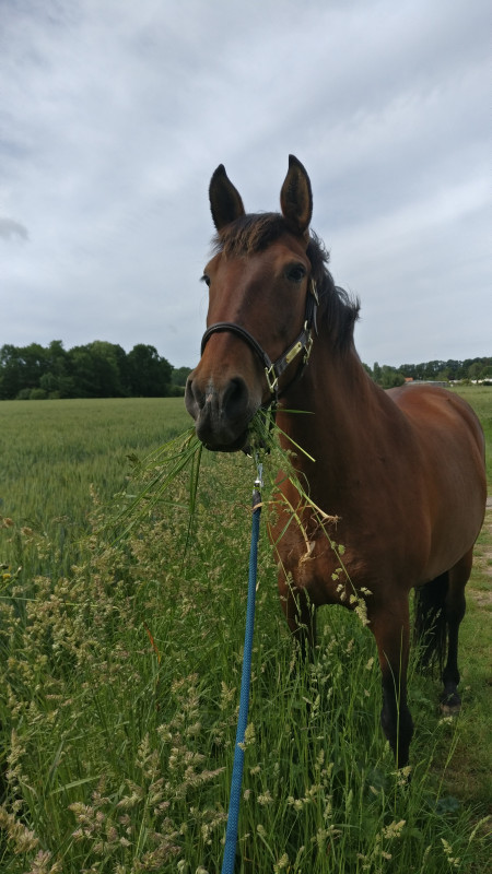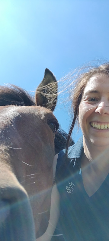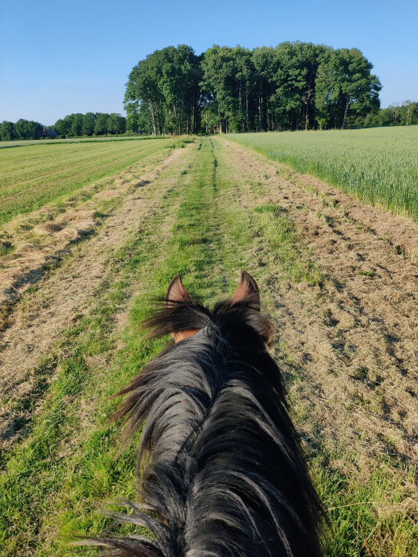 Une Calina extra, avec un pas actif certes mais sans stress malgré le vent, j'ai pu rester rênes longues sans souci ^^