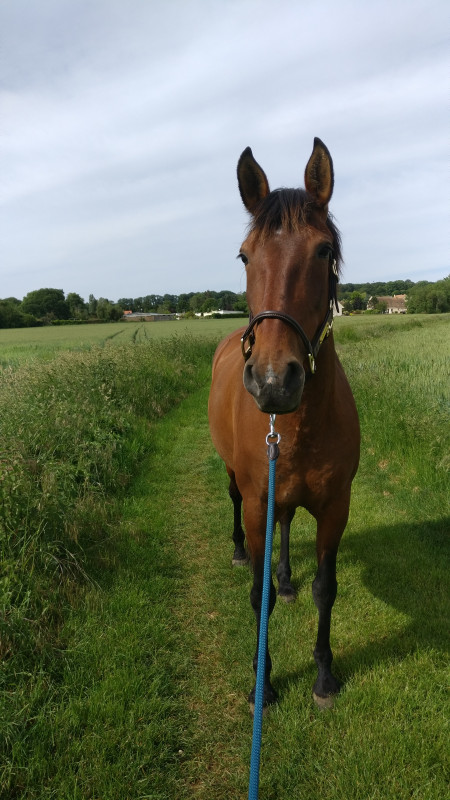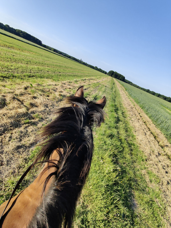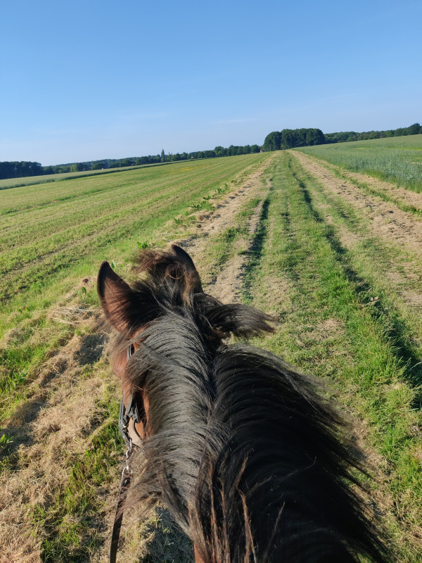 Au bout de 2km je me mets en selle : elle se place au montoir et même si je ne la sens pas ultra rassurée, elle prend sur elle et elle est contente de pouvoir avancer à son propre rythme !