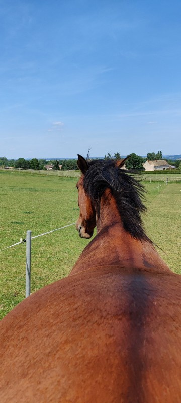 Je prends le temps de faire un pansage et je sens que ça l'apaise, je mets la selle et direction la carrière mais là rebelote ABSOLUMENT TOUT fait très très PEUR, j'ai l'impression de revenir 2 ans en arrière. Ça promet.