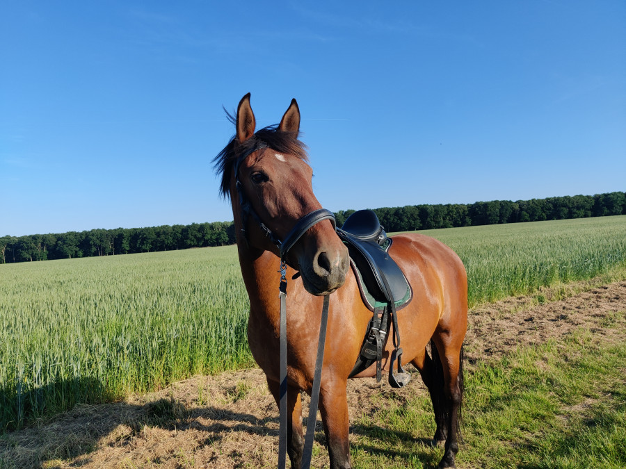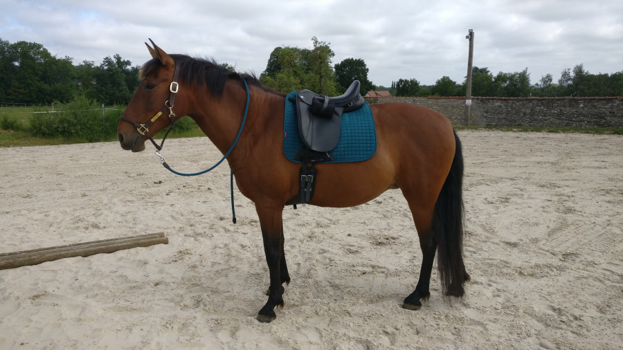 Elle était d'une propreté assez folle alors j'ai juste passé un coup de brosse rapide, j'ai sellé et j'ai pris ma bombe, au cas où je la sente bien au court de la balade (et au pire ça la réhabitue à avoir la selle ahah)