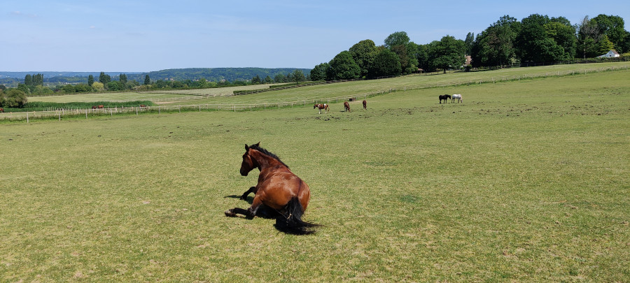 On part sur des chemins qu'elle connait bien jusqu'à arriver sur le long chemin de plaine que j'adore (une belle ligne droite en direction des écuries, j'avoue que j'appréhendais un peu !) et...