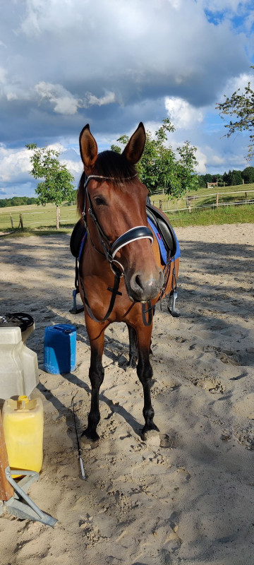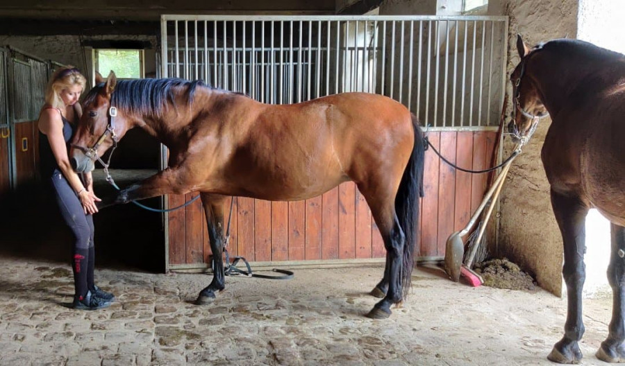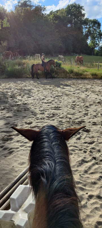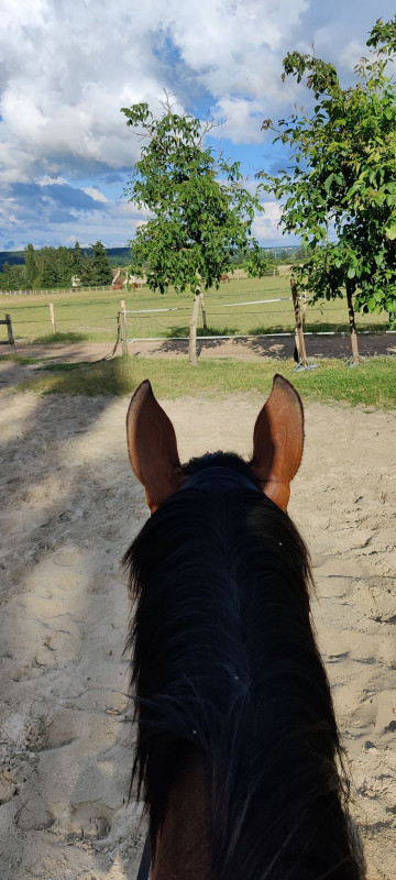 Je lui mets les LR et dès que je suis derrière elle, Calina se retourne, un peu de stress au début mais je prends le temps de lui faire comprendre que c'est juste une nouveauté, elle se calme et on commence ^^