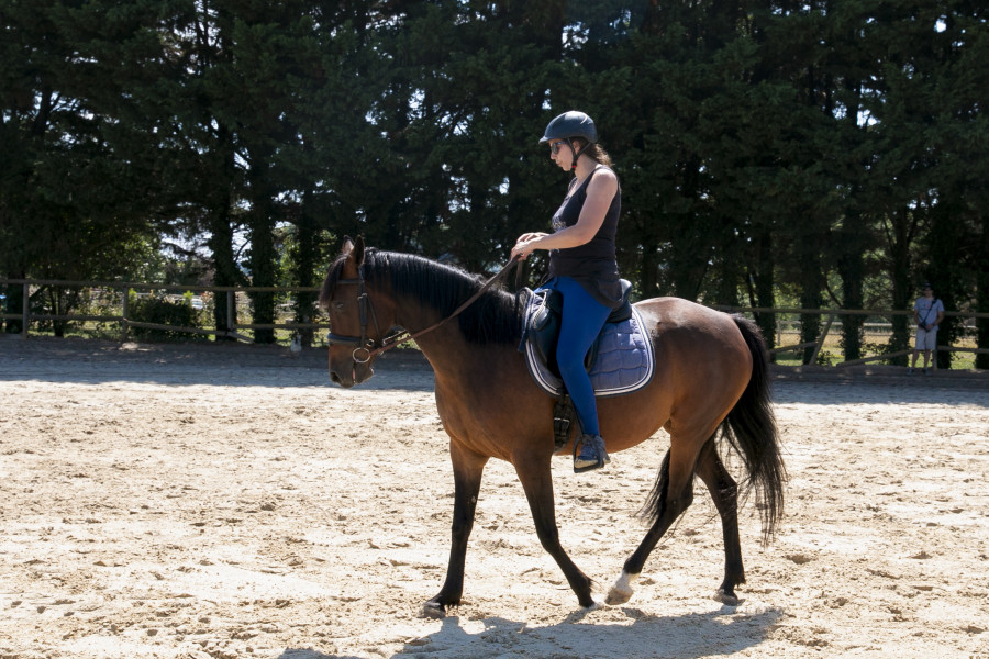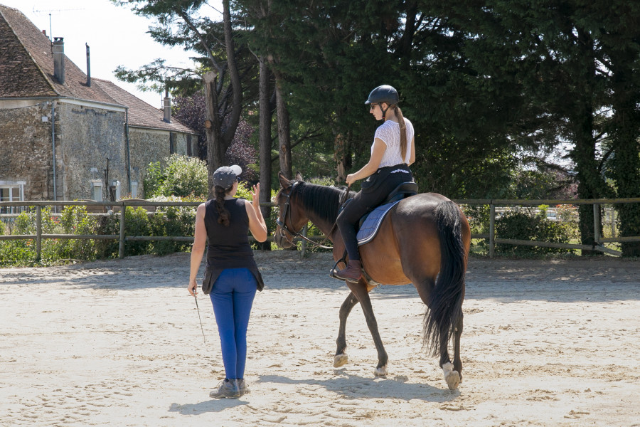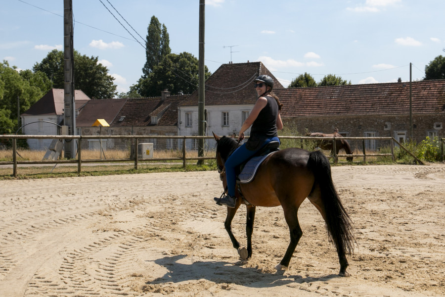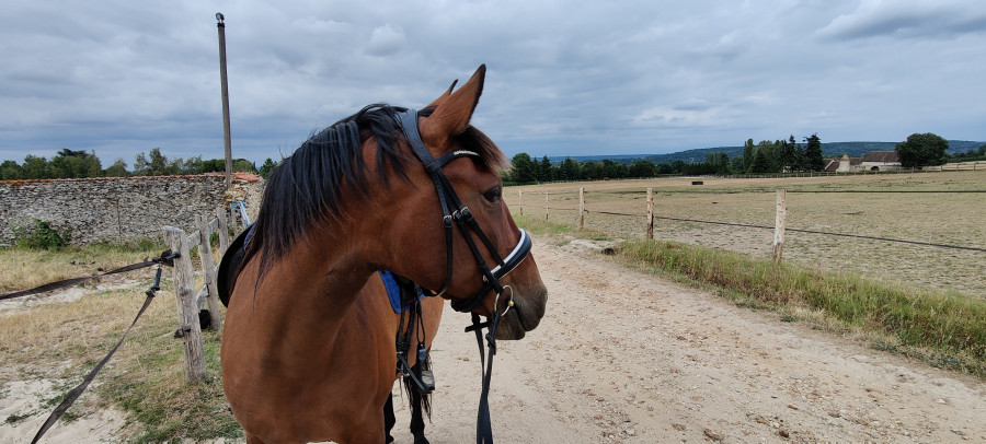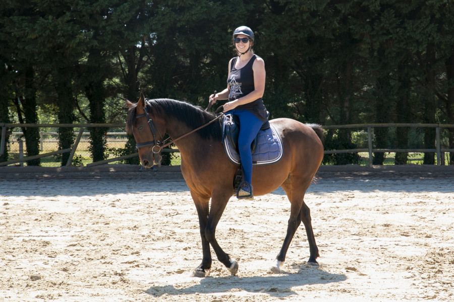 Je me mets en selle et on commence par rester à l'arrêt pour faire
