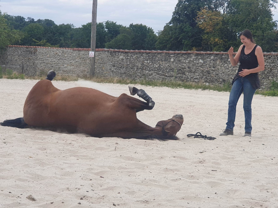 Demande du coucher : elle y va et se roule mais ne reste pas vraiment au sol mais je félicite quand même ^^