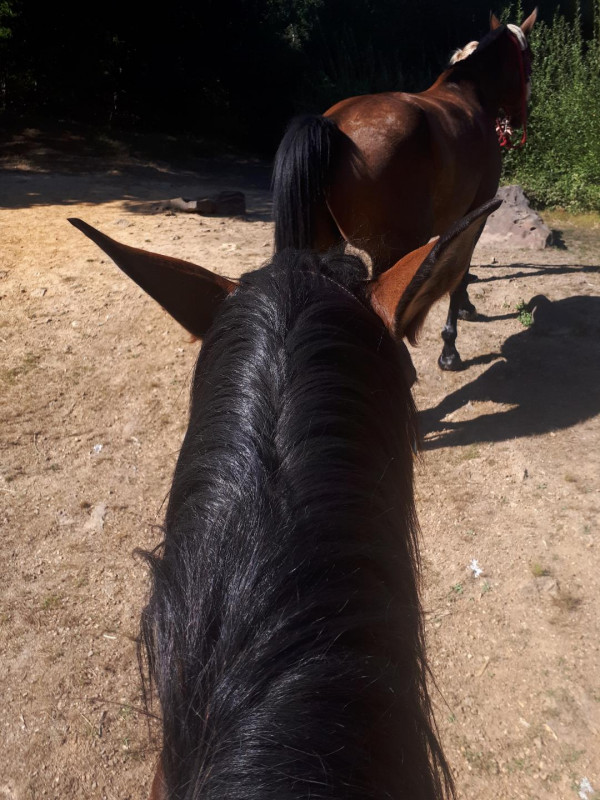 Point négatif, Calina a blessé au passage de sangle... Rien de grave mais il va falloir que j'attende un peu avant de pouvoir remettre la selle sans risquer d'empirer le truc, il va falloir être patiente ^^'