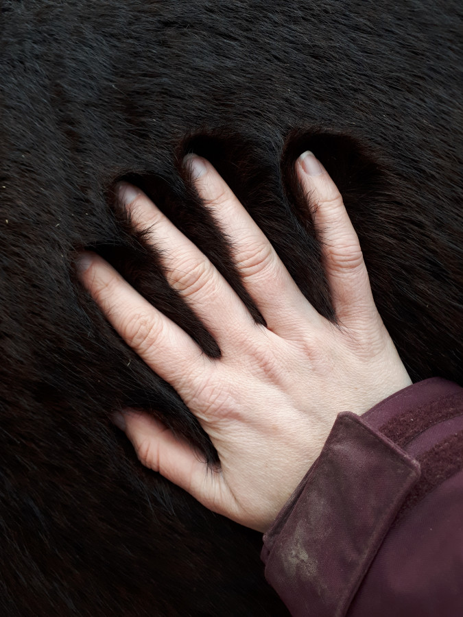 La mienne était congelée au pré quand je suis passée la voir, elle a déjà fait son poil de printemps ! Avec -7°C elle claquait des dents... donc je me disais que Calina pourrait peut-être lui prêter un peu de sa doudoune ?