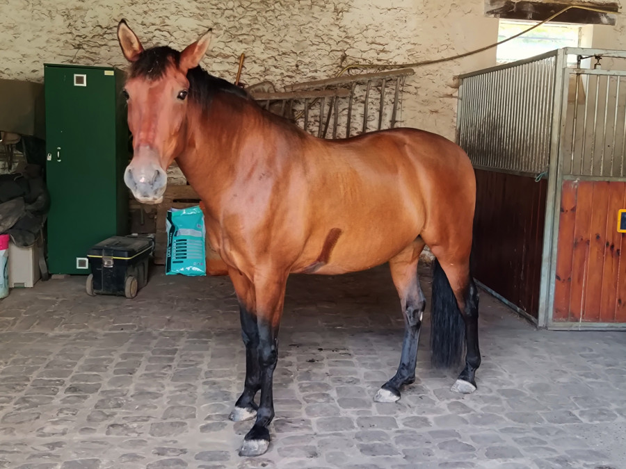 (très lent avec placement haut en recherchant le "rassemblé" / extensions d'encolure), travail des départs au galop sans faire des kilomètres et en alternant main droite / main gauche.