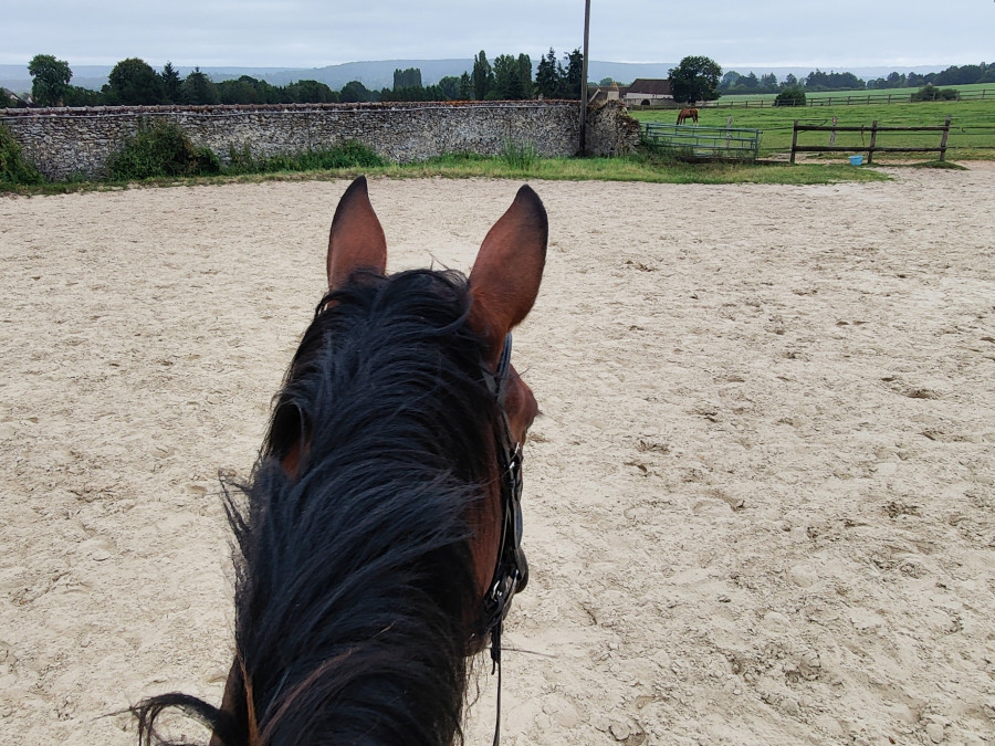 Victoire du jour : pouvoir faire la piste rênes posées sur l'encolure, aux 3 allures alors qu'il y avait du vent