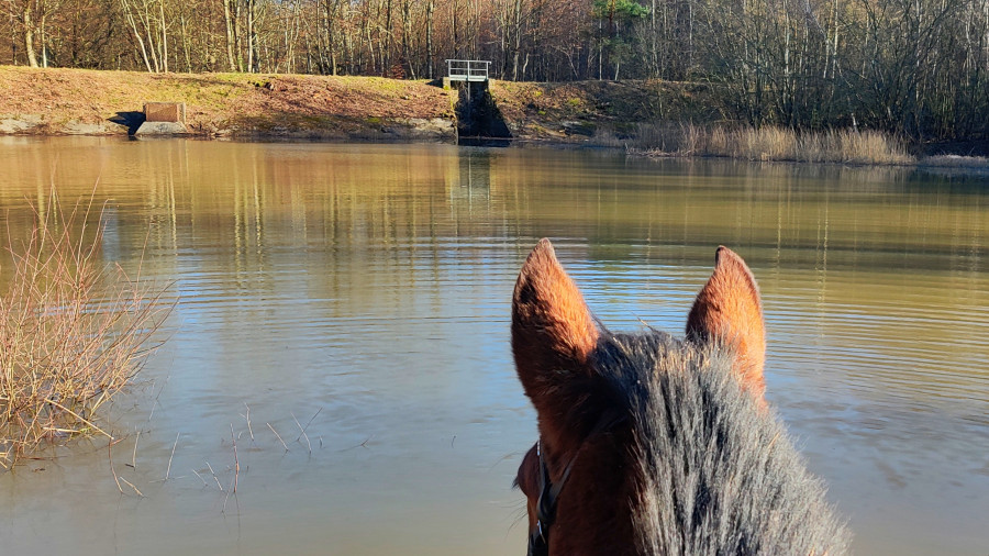 6km, un petit plouf dans l'étang et Chérichou qui me vole mon poney pour les 2 derniers kilomètres