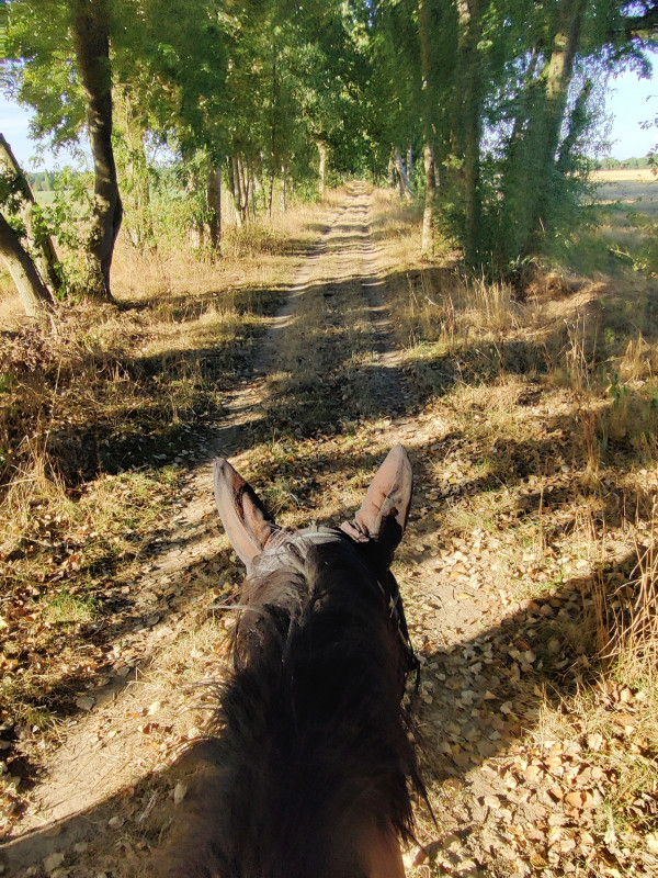 Balade de 7km ensuite, au pas et avec le tapis de monte à cru, d'abord avec Chérichou