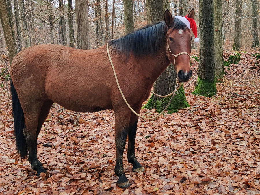 Pour finir mini balade à pied en prenant le chemin qui fait le tour des écuries (3km) je lui avais mis son bonnet de Noël et on a fait toute la balade en liberté, elle est trop choupette ^^