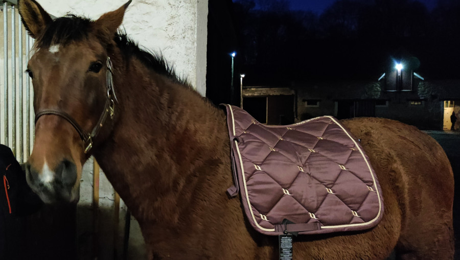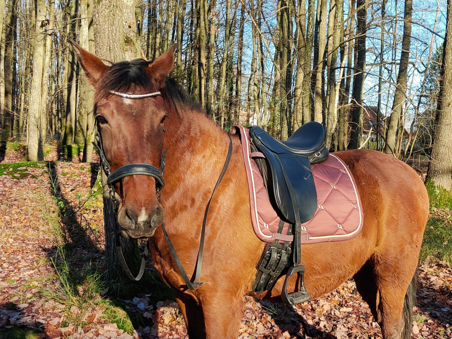 Je me mets en selle pour la dernière balade de 2022 (le temps passe trop vite !) il y avait un vent de dingue mais Calina n'a pas bougé : rênes longues, oreilles en avant et encore de beaux galops ^^