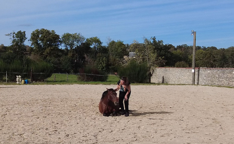 - Le coucher en total liberté et avec un autre cheval en carrière : sans souci !