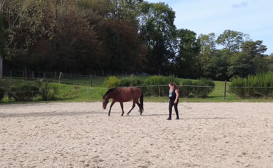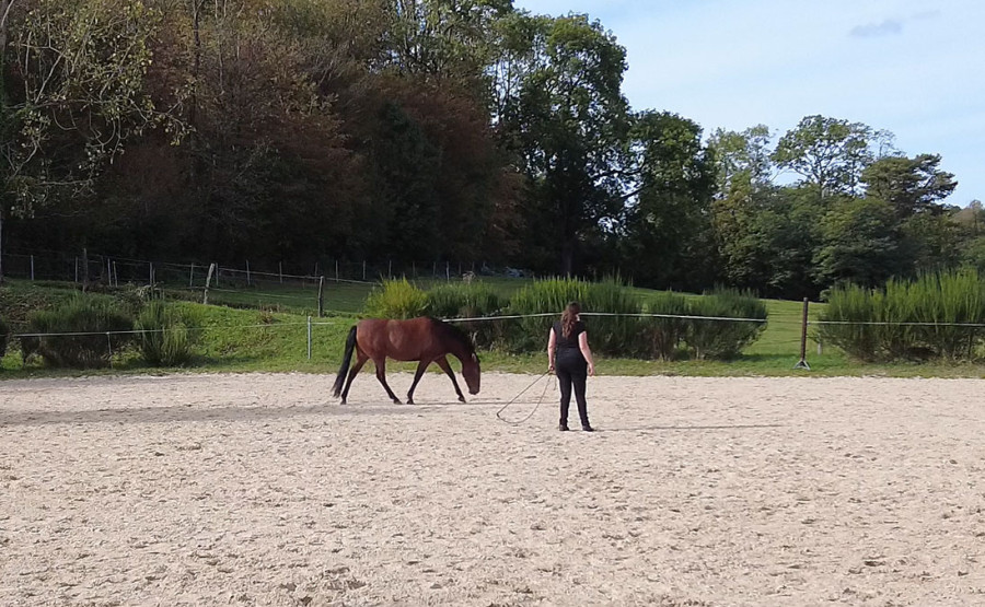 - "Longe" aux 3 allures pour l'échauffer avec changements de main par aspiration + transitions